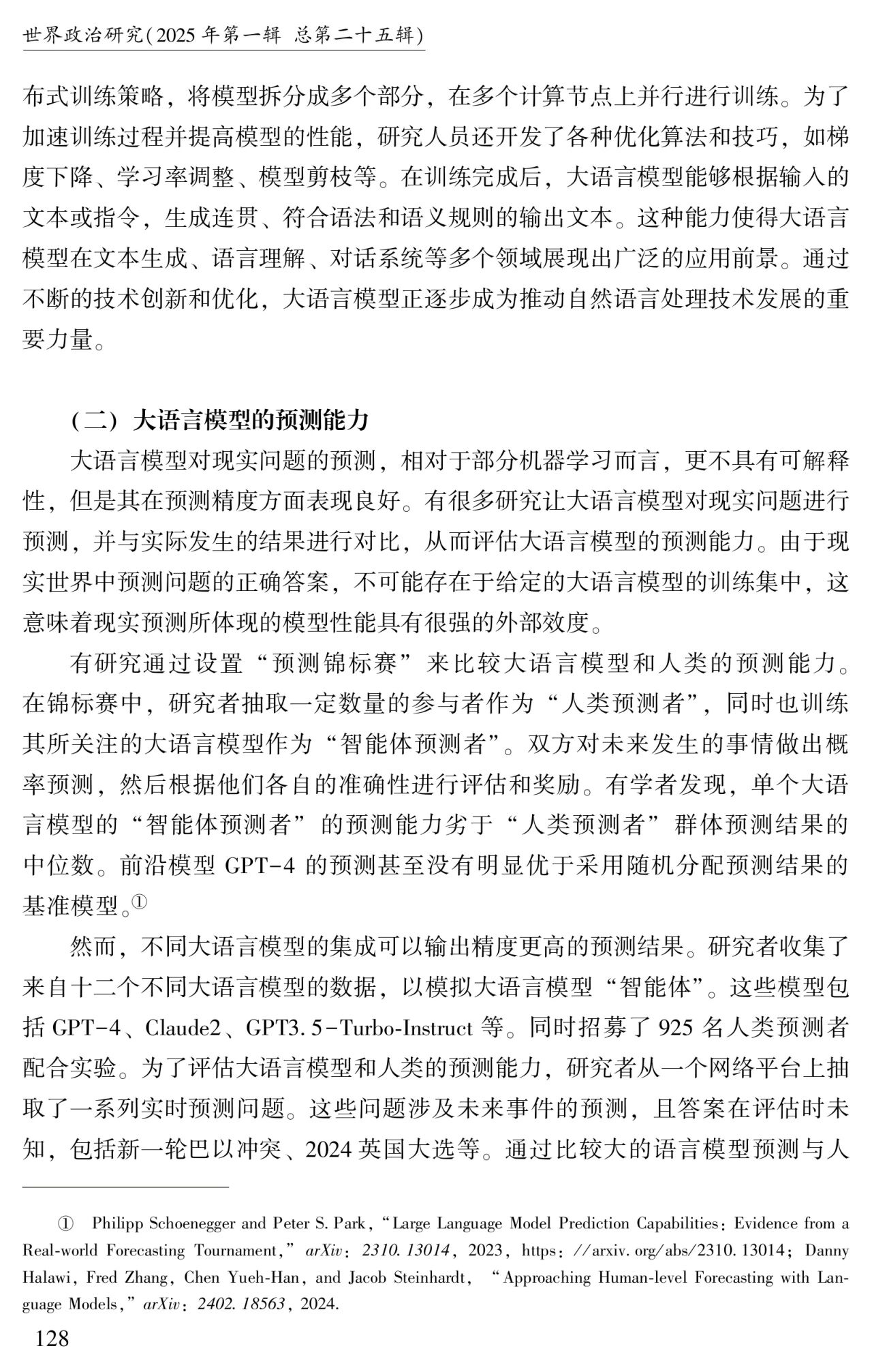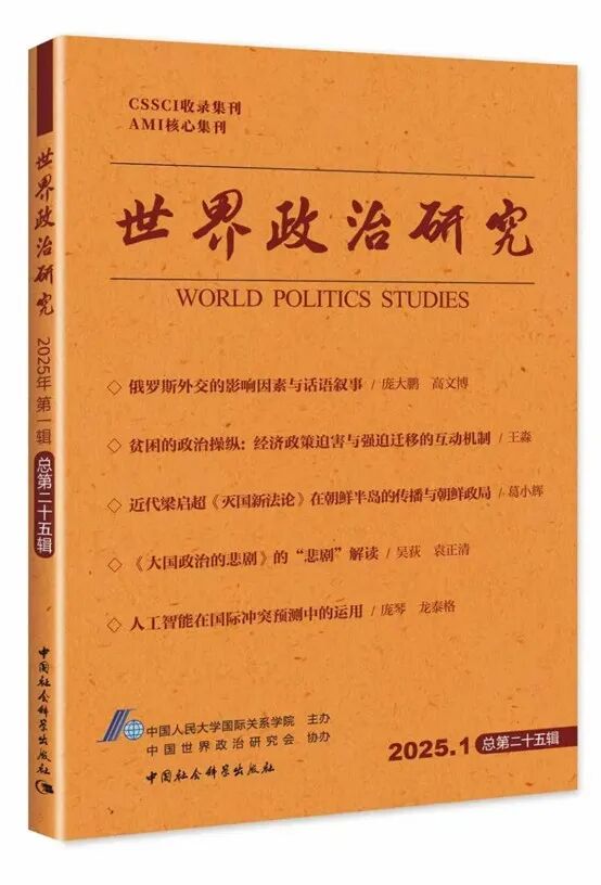 研究院研究员、国际关系学院庞琴教授在CSSCI收录集刊、AMI核心集刊《世界政治研究》2025年第一辑发表论文《人工智能在国际冲突预测中的运用》。