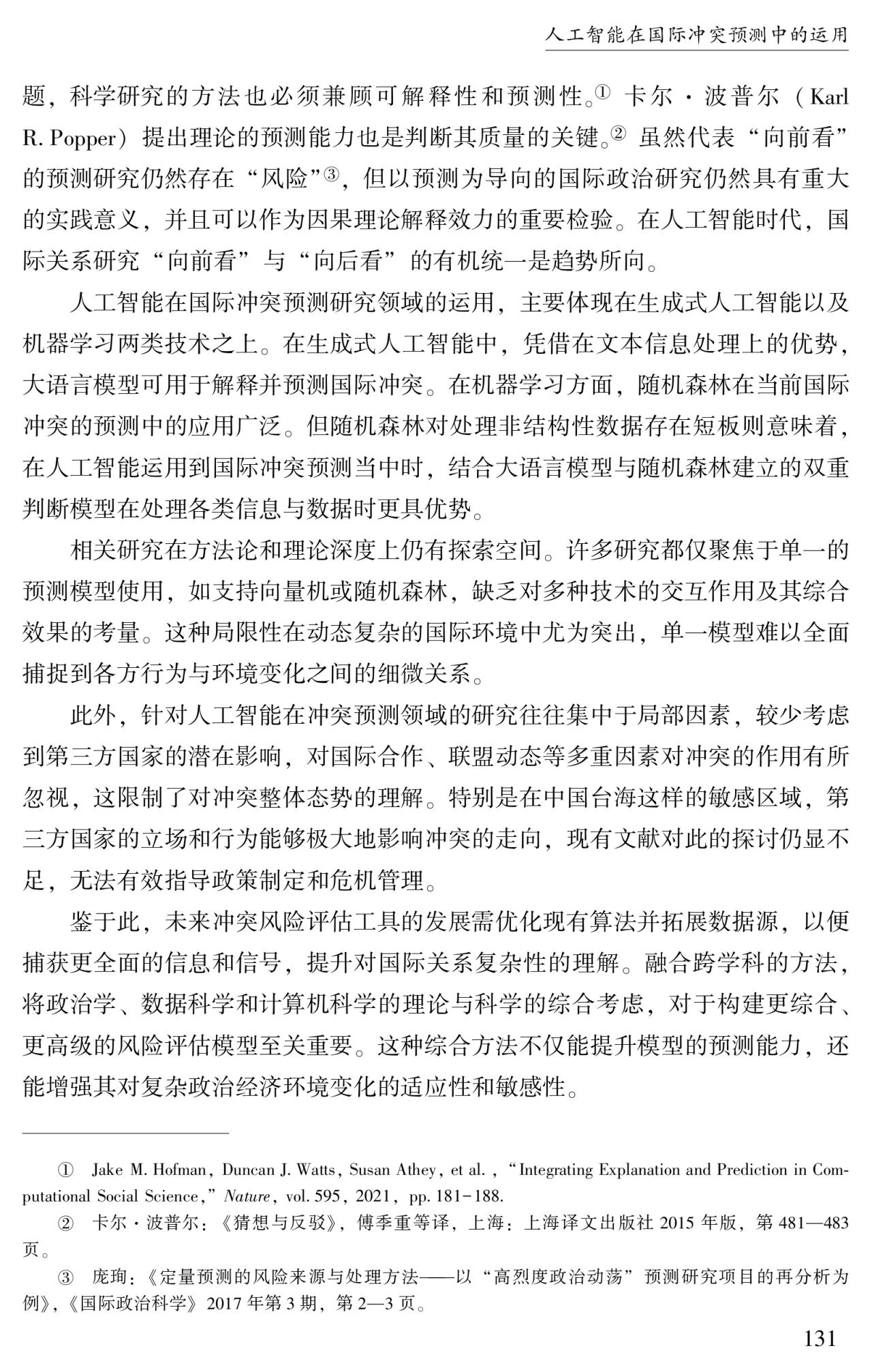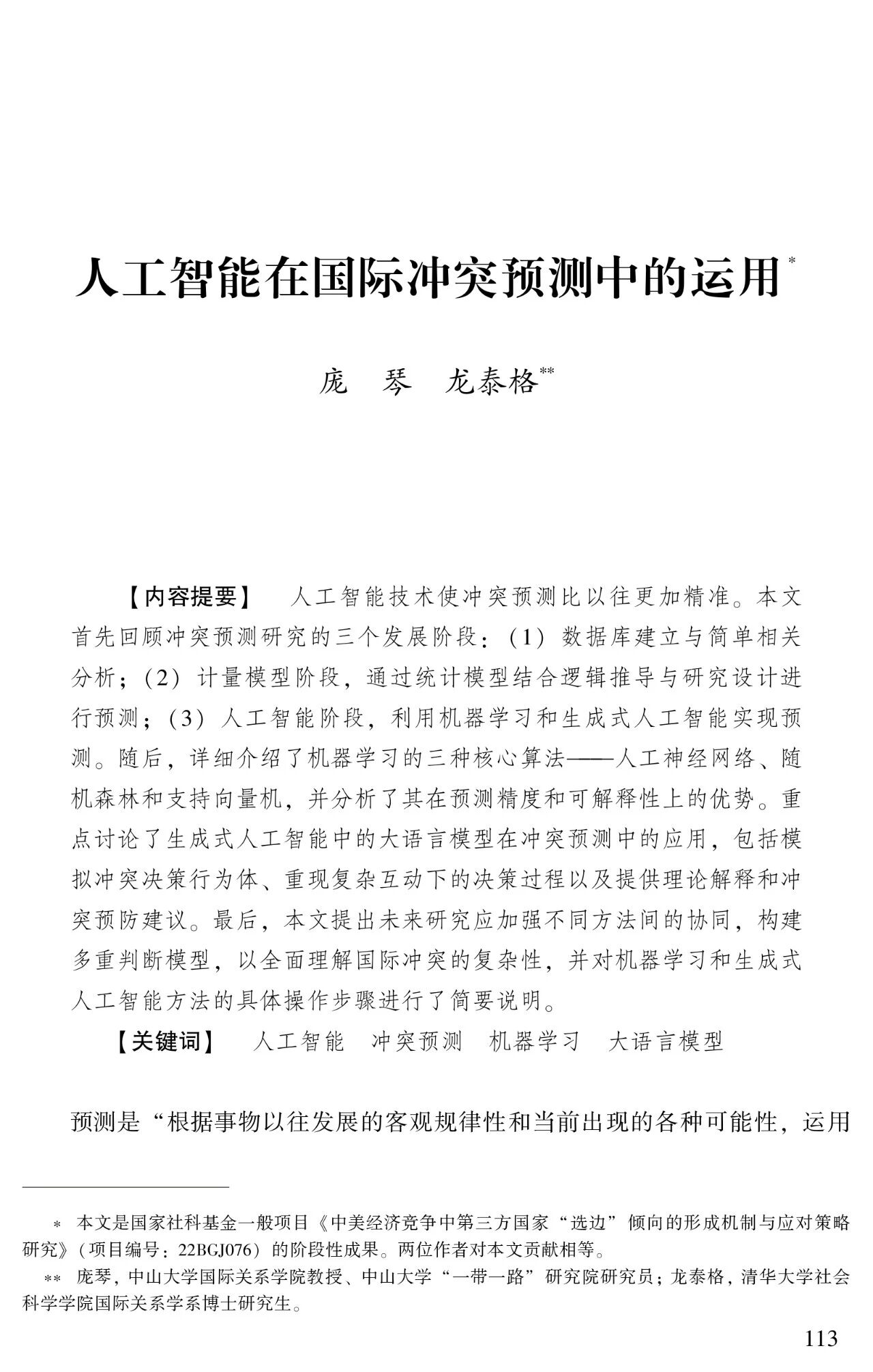 论文 | 庞琴、龙泰格:人工智能在国际冲突预测中的运用