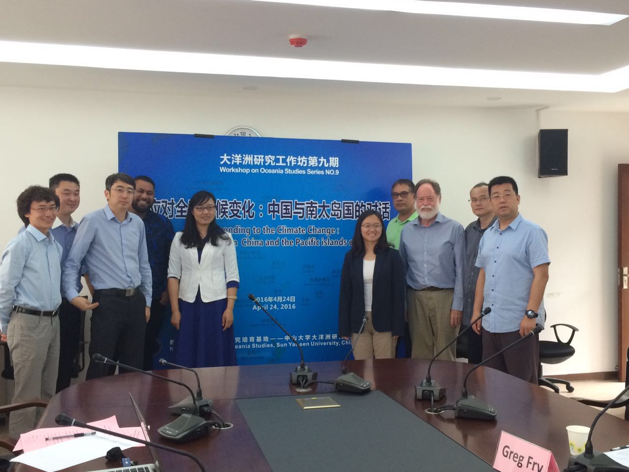 2016年4月24日,大洋洲研究工作坊第九期——“应对全球气候变化:中国与南太岛国的对话”在中山大学文科楼五楼第一会议室举行。中山大学国际问题研究院执行副院长袁丁教授、大洋洲研究中心常务副主任喻常森副教授分别介绍了国际问题研究院与大洋洲研究中心的发展历程,并强调了国际气候变化问题研究的重要性。