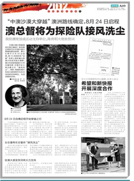 为了纪念中国与澳大利亚建交四十周年,《新快报》独家策划了“中澳沙漠大穿越——庆祝中澳建交四十周年活动”,并拟同时举行各种论坛以及评选出影响中澳关系发展的四十位重要人物。经过友好磋商,2012年2月15日,中山大学亚太研究院与广东《新快报》签署合作协议。协议规定,亚太研究院负责提供相关澳大利亚国情知识及中澳关系历史与现状方面的咨询,并参与制定评选重要人物的标准。而从8月24至9月7日,亚太研究院将派出喻常森副教授全程参与《新快报》组织的澳大利亚沙漠大穿越行动。